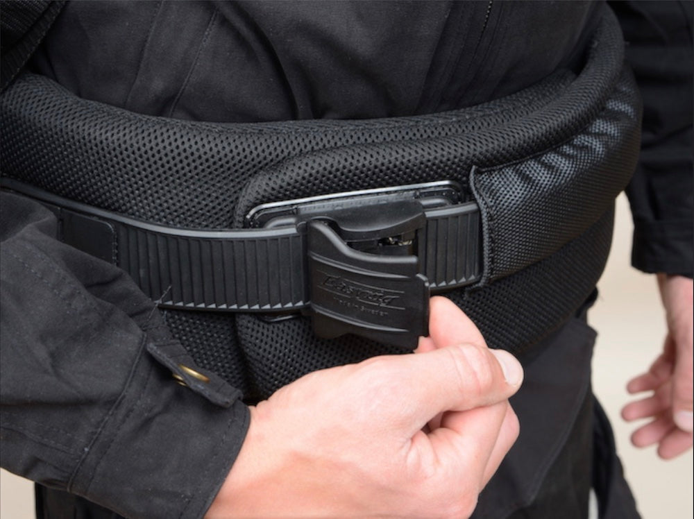 The Gimbal Rig vest is is a new support system designed by EasyRig aimed at cameramen using hand held Gimbal rigs. A modified vest has been designed with a wider front, fitting around the waist and over the hips. This new construction provides superior lower back support that allows the cameraman to carry weights further away from the body.