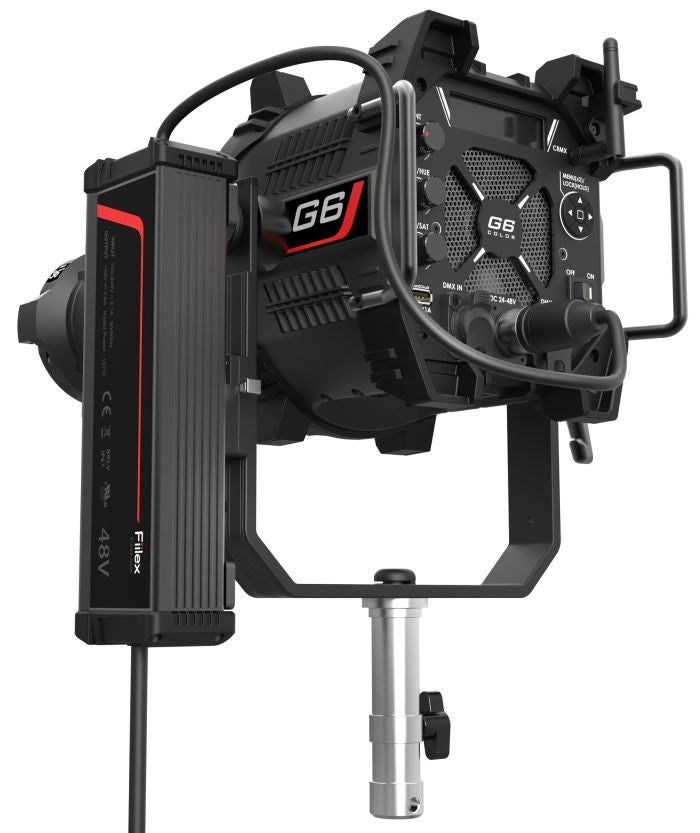 The G6 COLOR is a cinema-grade 175W full-color ellipsoidal with razor-sharp cuts and a unique 360 degree rotating barrel. The beam produced from either the 19°, 36° or 50° lens tube is uniform and bright without any color fringing. At the core of the G6 is the latest generation of Fiilex's patented Dense Matrix LED that adheres to the highest standards of dimming and color calibration. The G6 ellipsoidal gives you full control and can be rigged and hidden anywhere on production sets.