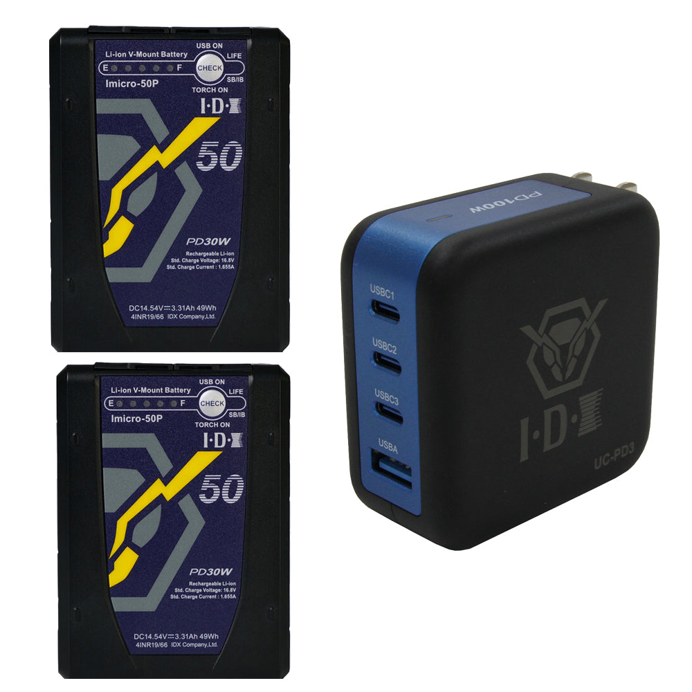 IDX IM-50P/PD3 2x Imicro-50P Batteries 1x UC-PD3 USB PD Charger