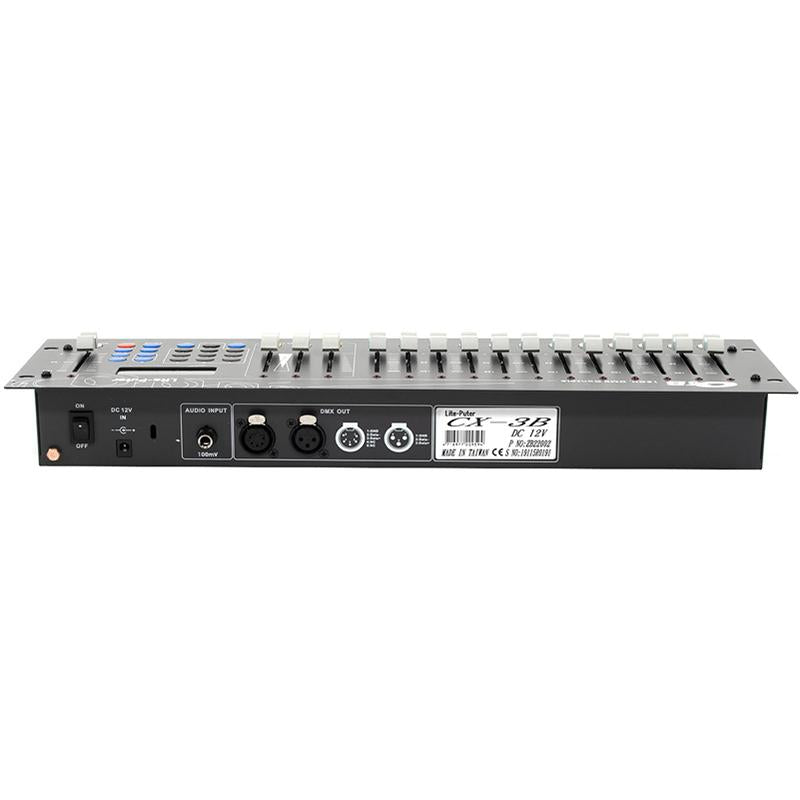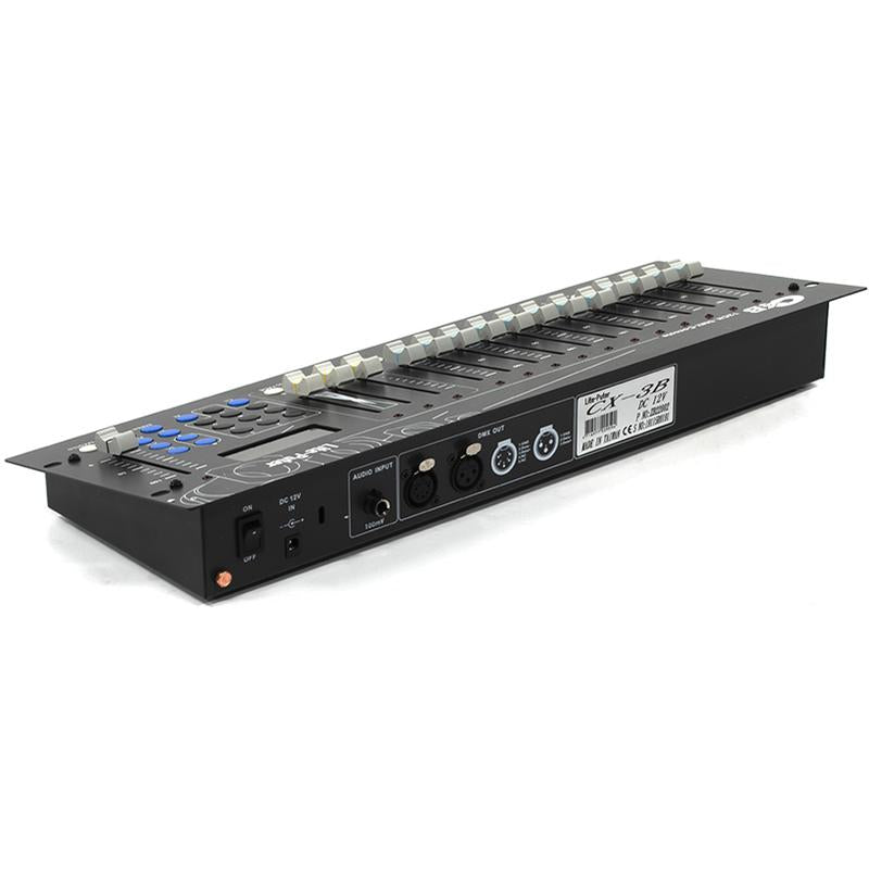 Lite-Puter CX-3B is a 12 channel DMX 512 lighting console with dual signal output. It has 12 hot keys for scene recalls and 1000 scene memories. In addition, the CX-3B has 2 cross-fade for scene change.