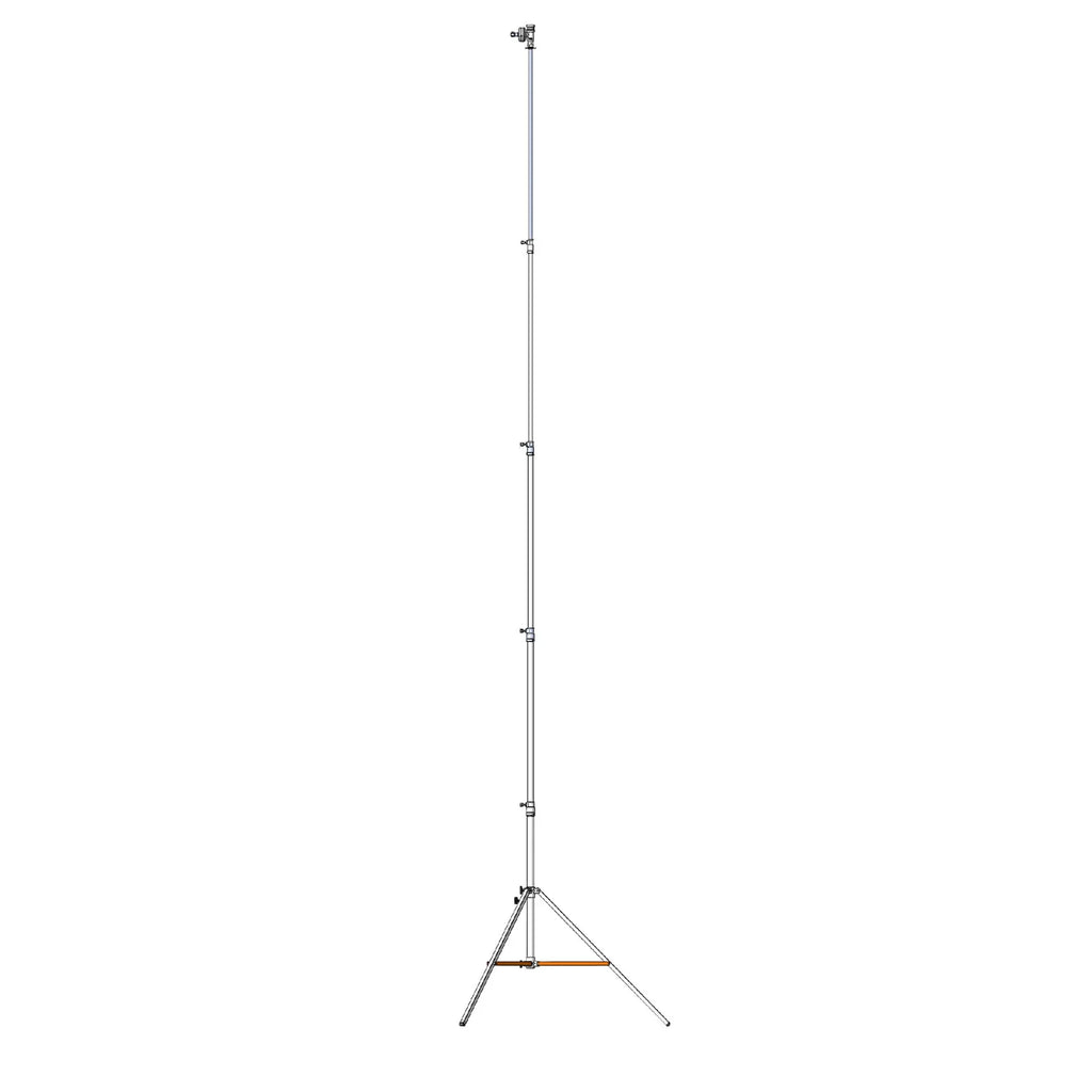 The Mombo Combo Stand achieves an incredible height of 22.3 feet. Because of this height, it features an extra-wide base and incorporates a collar for attaching stabilizing Guy Wires or ropes (Matthews #377578-40). The Mombo Combo legs are made of 1-1/4" square steel tubing and are internally reinforced with a Matthews engineered gusset assembly. The Mombo Combo's Rocky Mountain Leg will offset uneven terrain to ensure a firm, stable and sturdy footprint. This is absolutely the strongest stand of its type in the business!